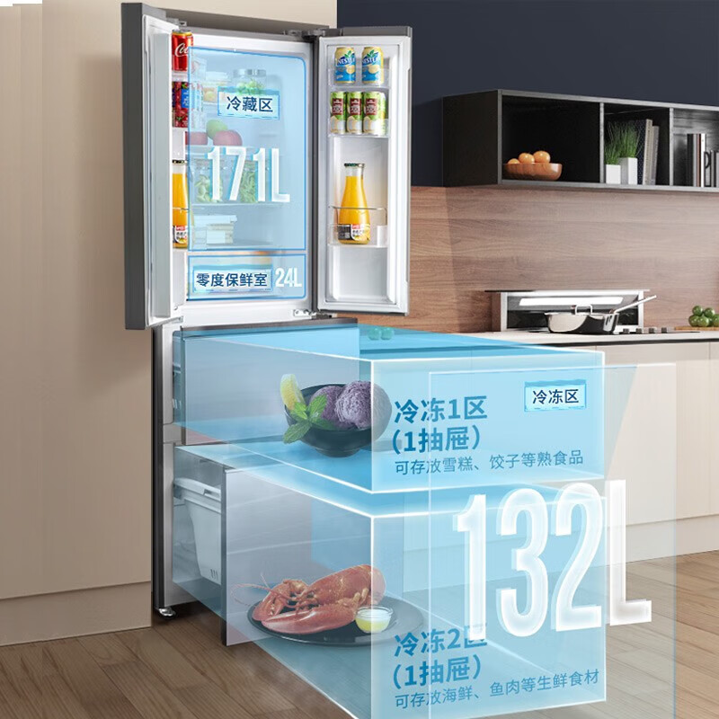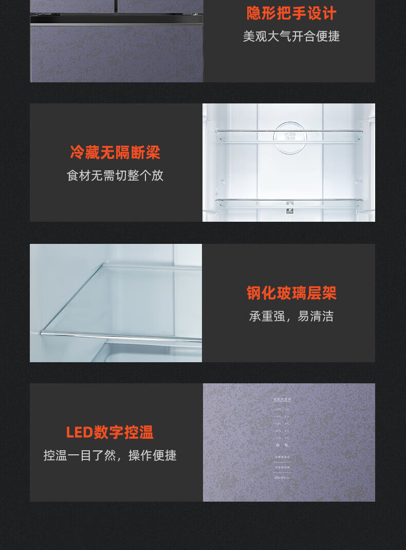BCD-526WUFGPZMA微晶系列60cm纯平全嵌式冰箱法式多门1级冰冷套装 9分钟急速净味 灰色