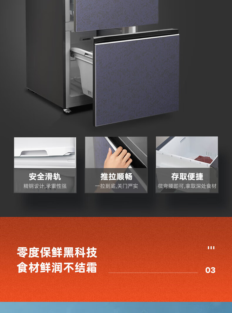 澳柯玛三开门冰箱风冷无霜冰箱一级能效537升大容量双变频智能0嵌式 BCD-537WPGSF