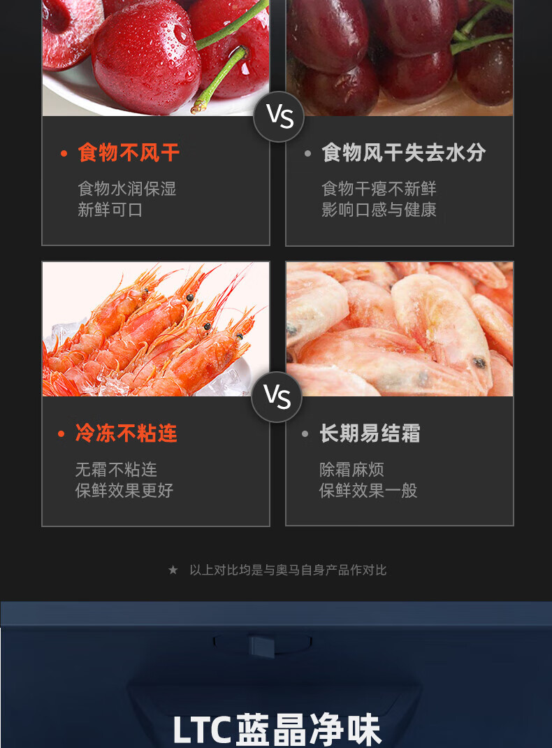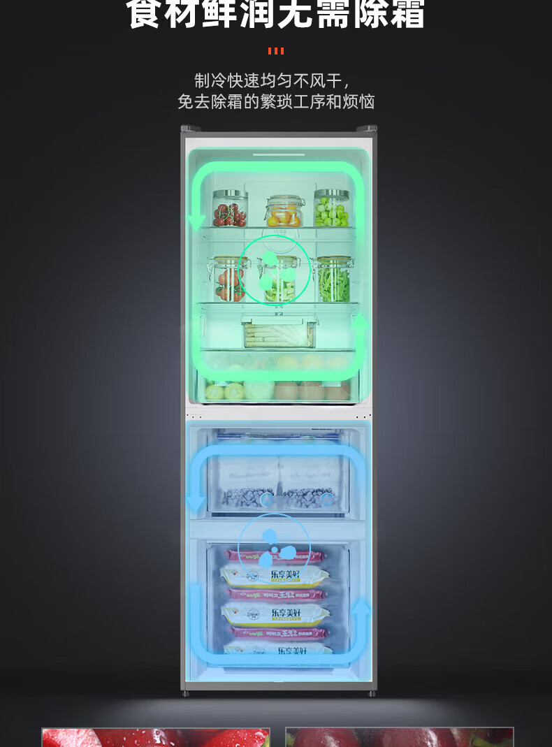 奥马(Homa)191升双门两门家用电冰箱 风冷无霜 LTC蓝晶净味冷冻小型212三门