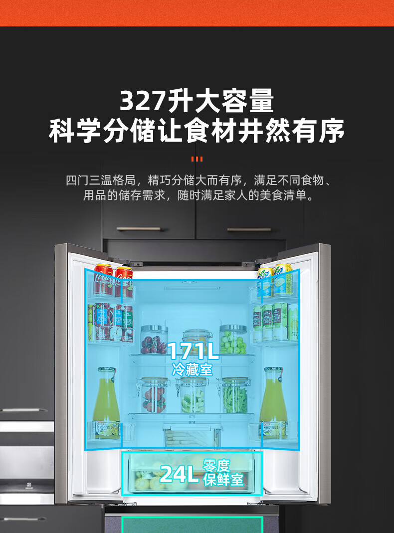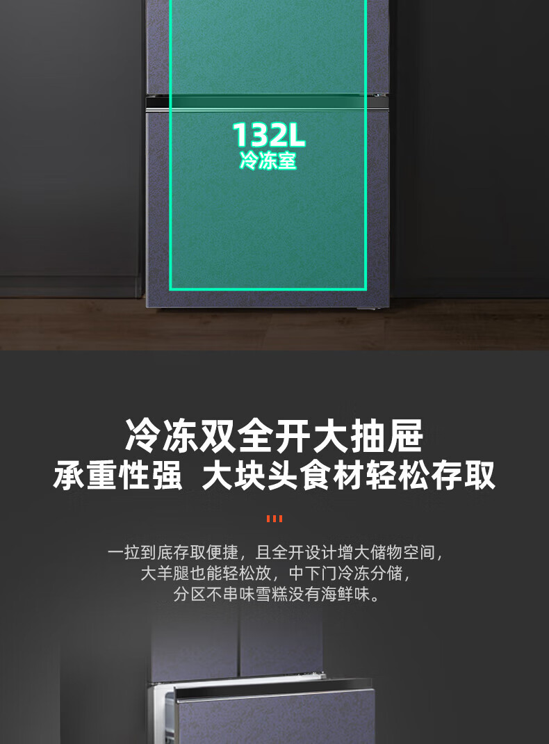 奥马超大容量冰箱 586升 十字四开门 风冷无霜 一级双变频 净味除菌 变温空间 风冷无霜 精细分区 586升宽变温