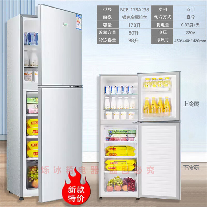 新飞138/170L双门小型冰箱家用两门三开门电冰箱节能租房大容量除菌